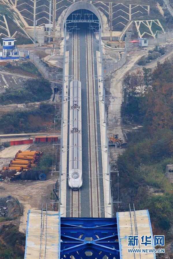 12月2日,一輛試驗(yàn)列車(chē)駛過(guò)成貴高鐵鴨池河特大橋。當(dāng)日,正在進(jìn)行聯(lián)調(diào)聯(lián)試的成貴高鐵進(jìn)入全線拉通空載模擬運(yùn)行階段,試驗(yàn)列車(chē)將在成都到貴陽(yáng)區(qū)間內(nèi)全線路運(yùn)行。線路全長(zhǎng)650公里的成貴高鐵是我國(guó)“八縱八橫”高速鐵路網(wǎng)的重要組成部分,設(shè)計(jì)時(shí)速為250公里。新華社記者劉續(xù)攝