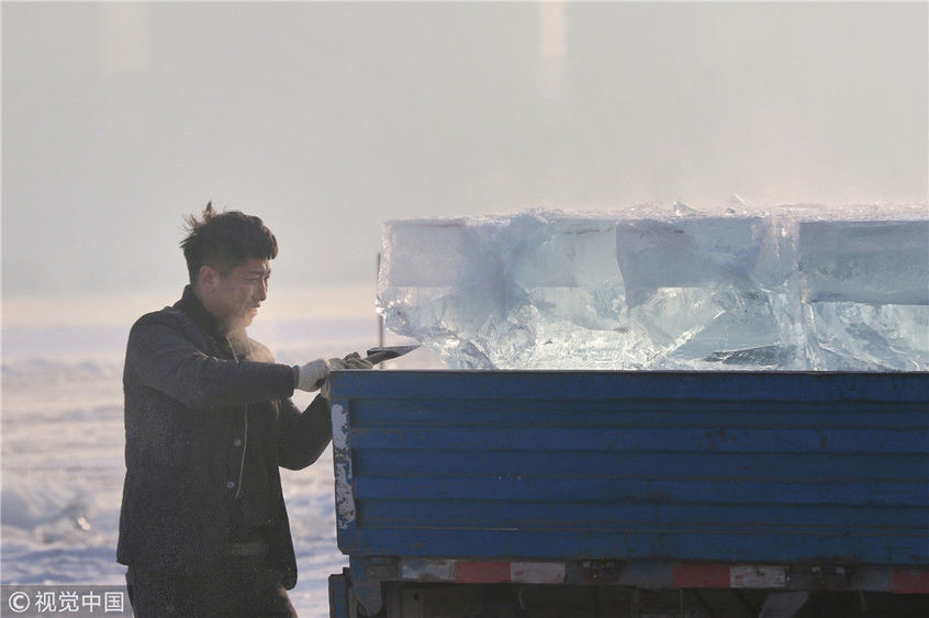 寒冬采冰人:起早貪黑 “淘金”冰雪