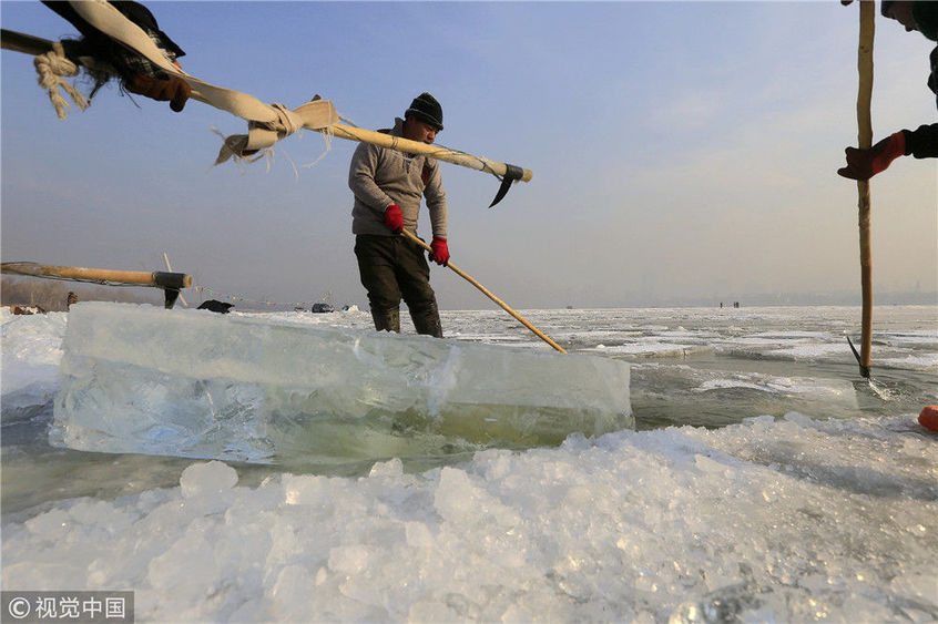 寒冬采冰人:起早貪黑 “淘金”冰雪