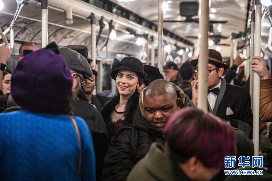 12月8日,在美國(guó)紐約,人們搭乘“懷舊專(zhuān)列”。每年感恩節(jié)到新年之間的星期日,紐約地鐵都會(huì)用1932年至1977年間使用的老式列車(chē)在運(yùn)營(yíng)的線路上開(kāi)行特別的“懷舊專(zhuān)列”,人們穿戴舊時(shí)服飾專(zhuān)程前來(lái)搭乘,體驗(yàn)時(shí)光回溯的奇妙旅程。新華社記者王迎攝