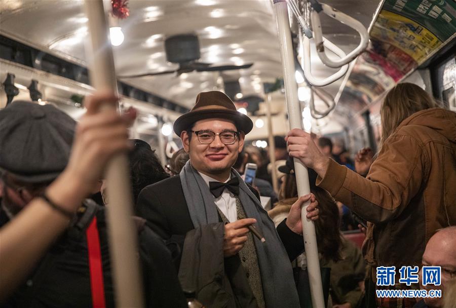 12月8日,在美國(guó)紐約,人們搭乘“懷舊專列”。每年感恩節(jié)到新年之間的星期日,紐約地鐵都會(huì)用1932年至1977年間使用的老式列車在運(yùn)營(yíng)的線路上開行特別的“懷舊專列”,人們穿戴舊時(shí)服飾專程前來(lái)搭乘,體驗(yàn)時(shí)光回溯的奇妙旅程。新華社記者王迎攝