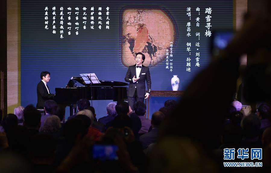 12月10日晚,廖昌永在音樂會上演唱《踏雪尋梅》。 當(dāng)晚,中國古典詩詞與書畫——廖昌永中國藝術(shù)歌曲獨(dú)唱音樂會在北京中國美術(shù)館舉行。 新華社記者 魯鵬 攝