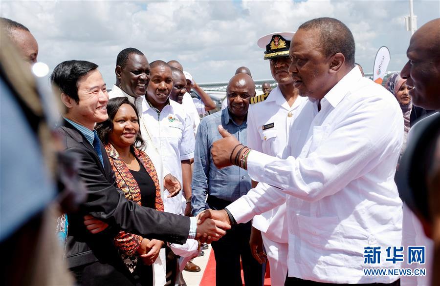12月13日,在肯尼亞加里薩郡,肯尼亞總統(tǒng)烏胡魯·肯雅塔(右)出席光伏發(fā)電站投運啟動儀式。 中企承建的東非最大光伏電站肯尼亞加里薩50兆瓦光伏發(fā)電站13日正式投入運營??夏醽喛偨y(tǒng)肯雅塔在投運啟動儀式上致辭說,這一電站將為加里薩帶來穩(wěn)定供電,助力當(dāng)?shù)亟?jīng)濟發(fā)展。 新華社記者 楊臻 攝