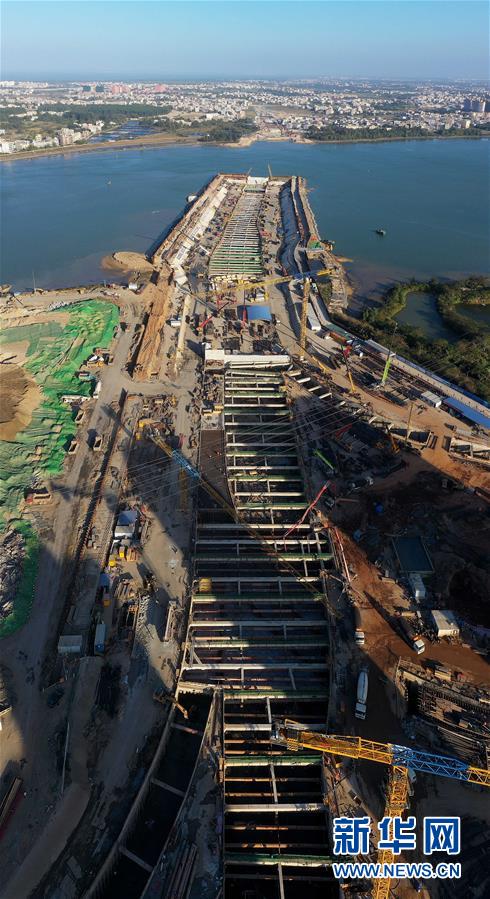 正在施工的??谖拿鳀|越江通道項目(12月14日無人機(jī)拍攝)。 ??谖拿鳀|越江通道項目是連接??谥鞒菂^(qū)和江東新區(qū)的重要紐帶,2018年底開工,全長4.38千米,其中隧道段2.72千米。據(jù)了解,目前項目總工程量已過半,將力爭在2020年4月份建成并實現(xiàn)功能性通車。 新華社記者 郭程 攝