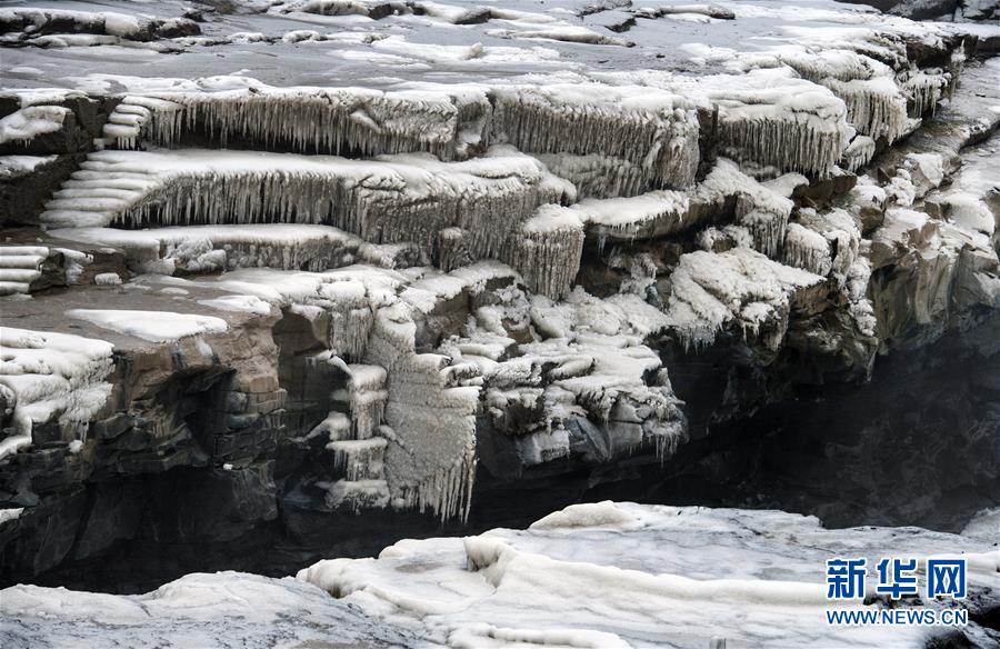 壺口瀑布因氣溫降低形成的景觀(12月14日攝)。 新華社記者 陶明 攝