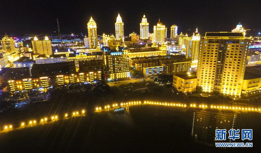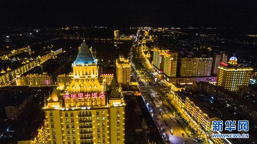 8月28日無(wú)人機(jī)拍攝的滿洲里市中心夜景。滿洲里市位于呼倫貝爾大草原腹地。新華社記者沈伯韓攝