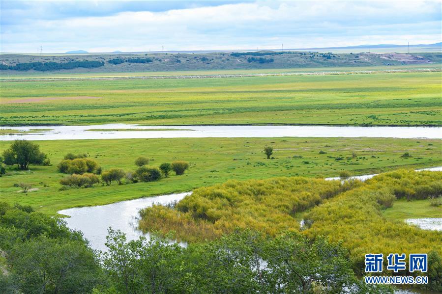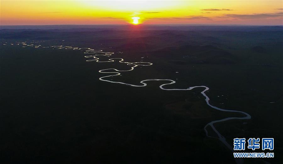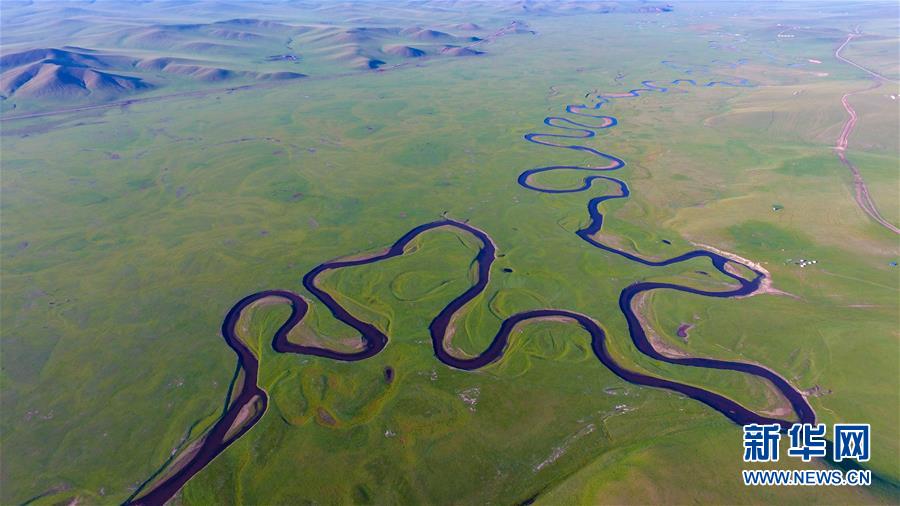 8月26日無(wú)人機(jī)拍攝的伊敏河(全景照片)。伊敏河流經(jīng)呼倫貝爾草原。新華社記者沈伯韓攝