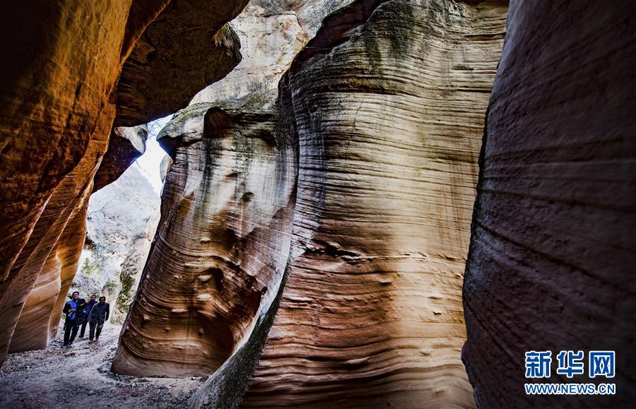 12月17日,游人在志丹縣雙河鎮(zhèn)毛項峽谷內(nèi)游覽。新華社記者陶明攝