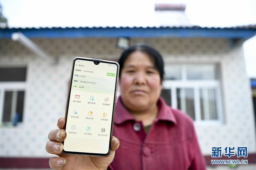在寧夏固原市彭陽(yáng)縣白陽(yáng)鎮(zhèn)白岔村,村民展示可以“手機(jī)買(mǎi)水”的界面(10月11日攝)。 新華社記者 馮開(kāi)華 攝