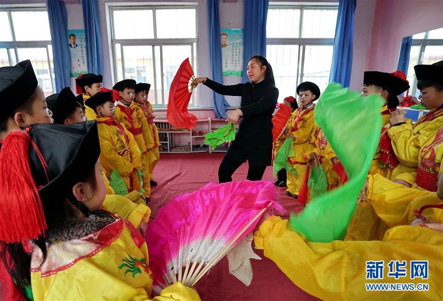12月19日,河北省灤州市小閆營小學(xué)學(xué)生在排練地秧歌。