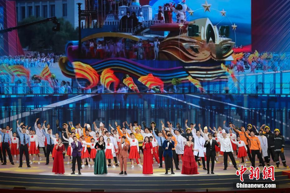 12月19日晚,慶祝澳門(mén)回歸祖國(guó)20周年文藝晚會(huì)在澳門(mén)東亞運(yùn)動(dòng)會(huì)體育館舉行。圖為韓磊(中)等領(lǐng)唱合唱《中國(guó)澳門(mén)》。中新社記者謝光磊攝