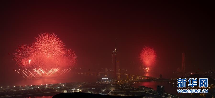 12月22日,煙花在澳門(mén)上空綻放。當(dāng)晚,澳門(mén)與珠海首次聯(lián)合舉行煙花匯演,慶祝澳門(mén)回歸20周年。新華社記者呂小煒攝