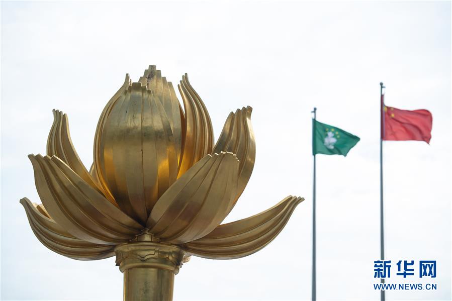 這是澳門(mén)金蓮花廣場(chǎng)上的《盛世蓮花》雕塑(12月13日攝)。新華社記者張金加攝