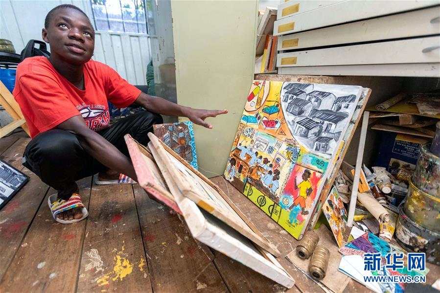 12月20日,在肯尼亞內(nèi)羅畢庫奧納藝術(shù)中心,一名畫家介紹自己的作品。 新華社記者 王騰 攝