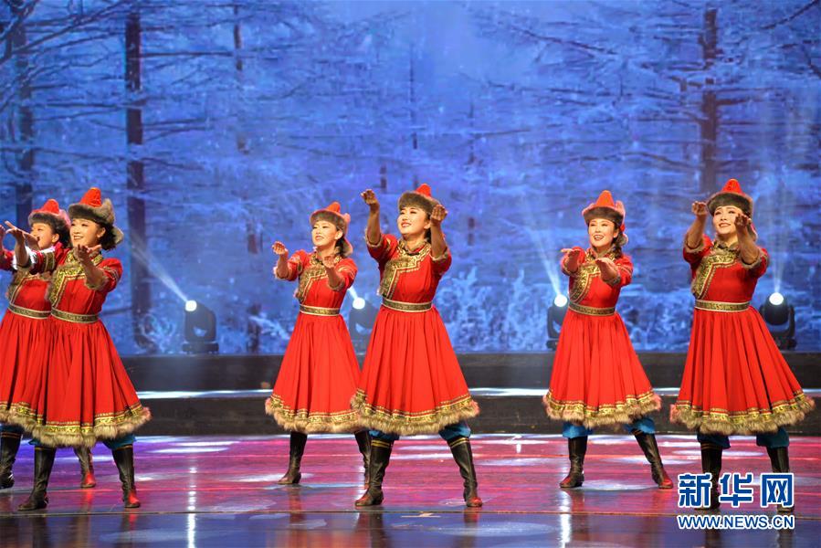 12月22日,演員在表演舞蹈《達(dá)斡爾民間呼號(hào)表演》。  新華社記者 徐欽 攝