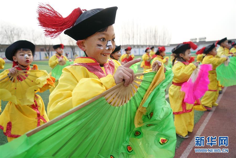 12月19日,河北省灤州市小閆營小學學生在排練地秧歌。 國家級非遺地秧歌是冀東地區(qū)廣為流傳的一種民間藝術。近年來,河北省灤州市響嘡街道小閆營小學將地秧歌引入校園,組建學生興趣社團,并聘請地秧歌藝人定期為孩子們授課,讓孩子們近距離感受家鄉(xiāng)傳統(tǒng)文化的魅力。 新華社記者 牟宇 攝