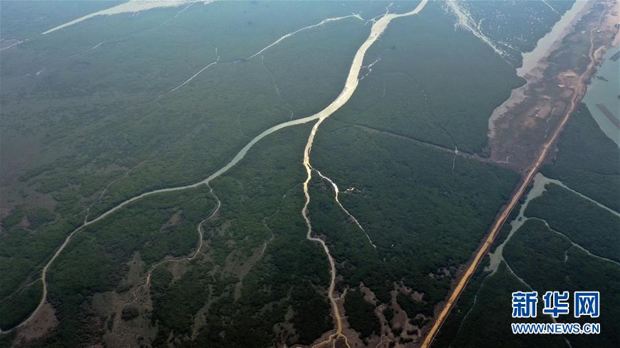 12月21日無人機(jī)拍攝的廣西合浦縣黨江鎮(zhèn)更螺圍出海口一景。冬日,廣西廉州灣海域風(fēng)光別致。新華社記者張愛林?jǐn)z