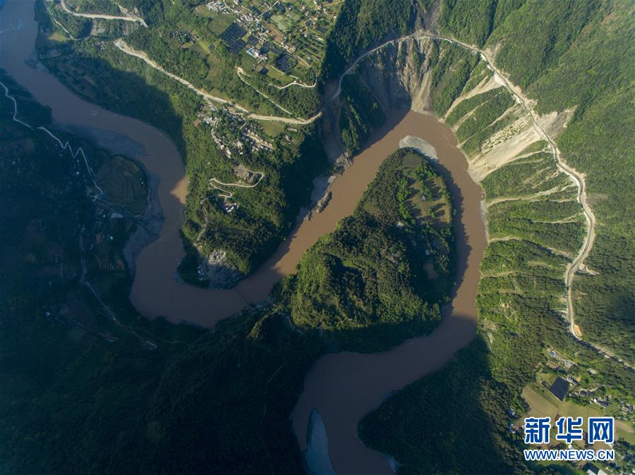 這是4月27日在云南省貢山獨(dú)龍族怒族自治縣丙中洛鎮(zhèn)拍攝的“怒江第一灣”(無(wú)人機(jī)拍攝)。怒江自青藏高原一路奔騰向南流至云南省貢山獨(dú)龍族怒族自治縣丙中洛鎮(zhèn),高黎貢山與碧羅雪山夾江而立,江水順山勢(shì)急轉(zhuǎn)形成了一個(gè)氣勢(shì)磅礴的半圓形大灣,被稱為“怒江第一灣”。新華社記者江文耀攝