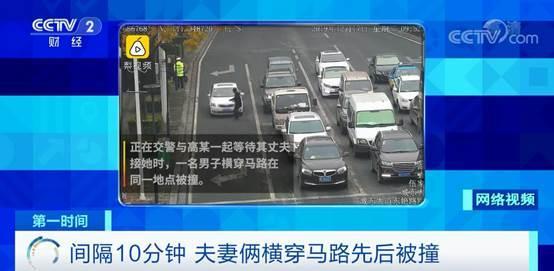 大概10分鐘左右,一名男子小跑著橫穿機(jī)動(dòng)車道,在高某被撞的同一地點(diǎn),也被一輛白色小車給撞倒。而這名男子正是高某的丈夫。