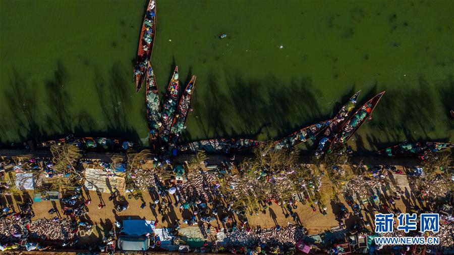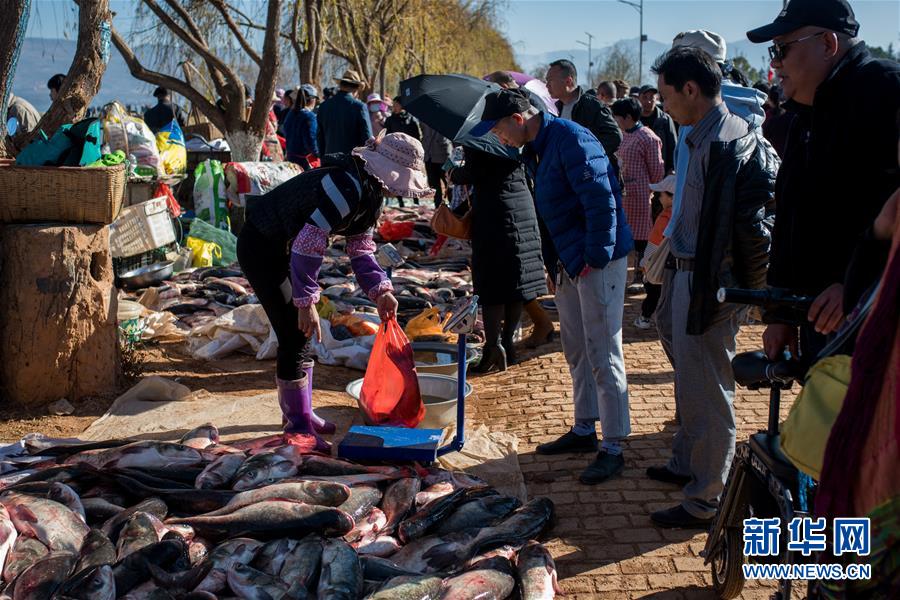 星云湖畔的老河咀魚(yú)市熱鬧非凡(12月25日無(wú)人機(jī)拍攝)。新華社記者胡超攝