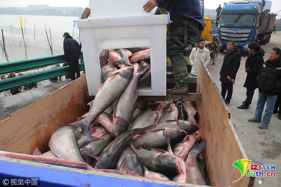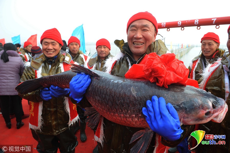 安徽阜陽(yáng):八里河冬捕魚(yú)“頭魚(yú)”拍出88萬(wàn)元