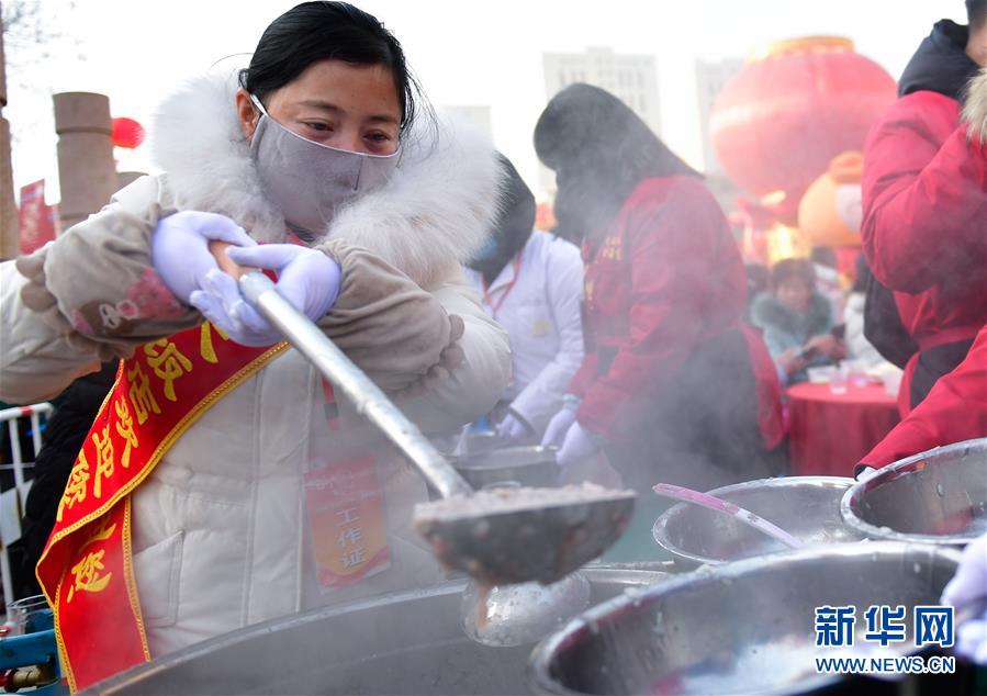 1月2日,工作人員在青海省海東市平安區(qū)“共品臘八粥”活動現(xiàn)場為市民盛粥。 當日是農(nóng)歷臘月初八,中國傳統(tǒng)臘八節(jié)。 新華社記者 張龍 攝