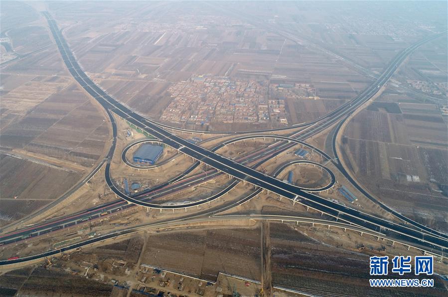這是1月3日拍攝的北京大興國際機(jī)場北線高速公路廊坊段王場互通樞紐(無人機(jī)照片)。