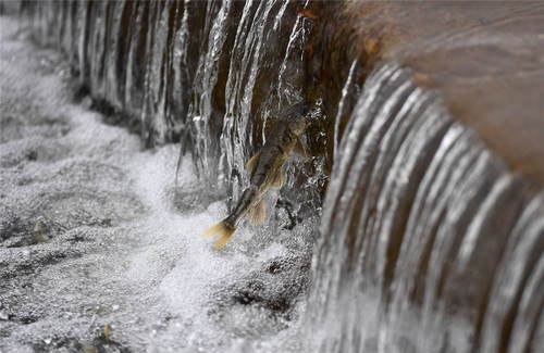 2019年7月6日,在青海省剛察縣沙柳河里,一條湟魚在洄游。新華社記者張宏祥攝