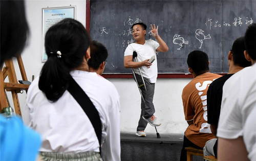 2019年9月9日,在位于西安市的陜西省城市經(jīng)濟學(xué)校,計算機平面設(shè)計專業(yè)的美術(shù)老師王旭陽在給新生講授繪畫基礎(chǔ)知識。該校是西安唯一一所針對殘障人士設(shè)立的特殊教育中等職業(yè)學(xué)校。新華社記者劉瀟攝
