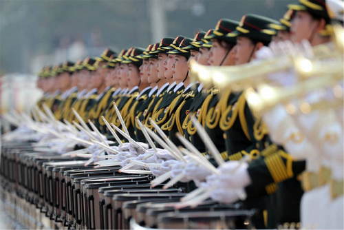 2019年10月1日,慶祝中華人民共和國成立70周年大會在北京天安門廣場隆重舉行。這是女兵方隊接受檢閱。新華社記者王毓國攝