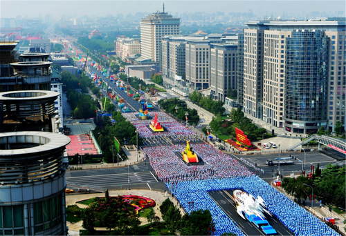 2019年10月1日,慶祝中華人民共和國成立70周年大會在北京天安門廣場隆重舉行。這是群眾游行中的與時俱進(jìn)方陣。新華社記者歐東衢攝