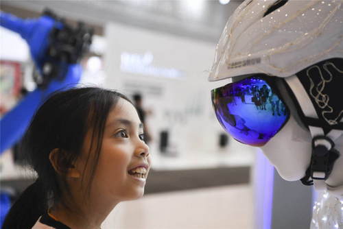2019年8月25日,一名小朋友在2019智博會主會場重慶國際博覽中心參觀。新華社記者王全超攝