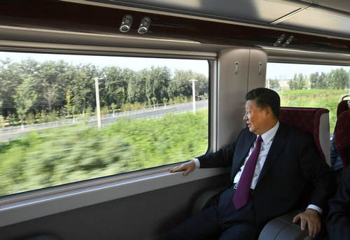 2019年9月25日上午,北京大興國際機場投運儀式在北京舉行。中共中央總書記、國家主席、中央軍委主席習(xí)近平出席儀式,宣布機場正式投運并巡覽航站樓。這是習(xí)近平乘坐軌道列車前往北京大興國際機場。新華社記者謝環(huán)馳攝