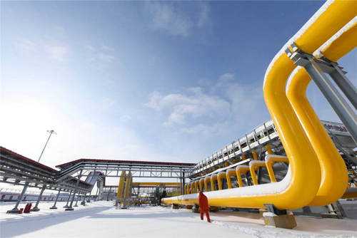 2019年11月19日,在位于黑龍江省黑河市的中俄東線天然氣管道北段黑河首站場區(qū),工作人員從管線旁經(jīng)過。新華社記者王建威攝