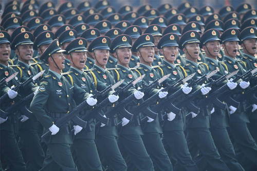 2019年10月1日,慶祝中華人民共和國成立70周年大會在北京天安門廣場隆重舉行。這是陸軍方隊接受檢閱。新華社記者劉瀟攝