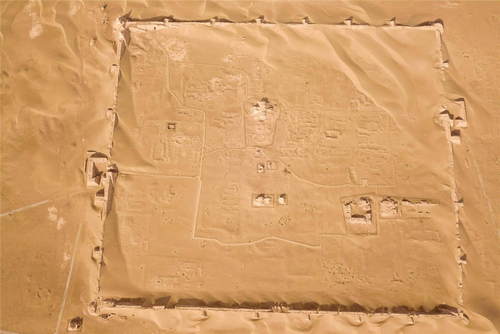 2019年10月18日拍攝的黑城遺址城池全貌(無人機照片)。黑城遺址位于內(nèi)蒙古阿拉善盟額濟納旗達(dá)來庫布鎮(zhèn),建于公元九世紀(jì),是草原絲綢之路上現(xiàn)存較為完整的一處古城遺址,2001年被列入第五批全國重點文物保護(hù)單位。新華社記者彭源攝