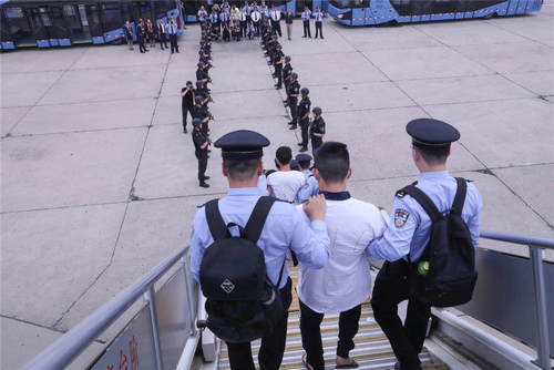 2019年6月7日,在北京首都國際機場,94名冒充公檢法機關(guān)工作人員實施電信網(wǎng)絡(luò)詐騙的中國臺灣籍犯罪嫌疑人被我國公安機關(guān)從西班牙押解回國。這是我國首次從歐洲大規(guī)模押回電信網(wǎng)絡(luò)詐騙犯罪嫌疑人。新華社記者殷剛攝