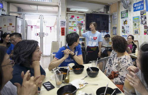 2019年10月10日,食客在李凱瑚位于香港九龍的茶餐廳里聚集,為她加油。51歲的李凱瑚是土生土長的香港人,她多次參加撐警集會,并在社交媒體上表態(tài)支持警察。遭到騷擾和恐嚇 但李凱瑚繼續(xù)勇敢支持警察,向市民發(fā)出號召,反對暴力。一些香港市民、內(nèi)地游客專程來到李凱瑚的茶餐廳,為她加油打氣,表達(dá)對香港的美好祝愿。新華社記者盧燁攝