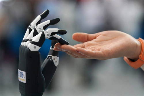 2019年6月13日,全國大眾創(chuàng)業(yè)萬眾創(chuàng)新活動周——北京會場主題展在中關(guān)村國家自主創(chuàng)新示范區(qū)展示中心開幕。這是一位參展商在演示展出的機器人產(chǎn)品。新華社記者鞠煥宗攝