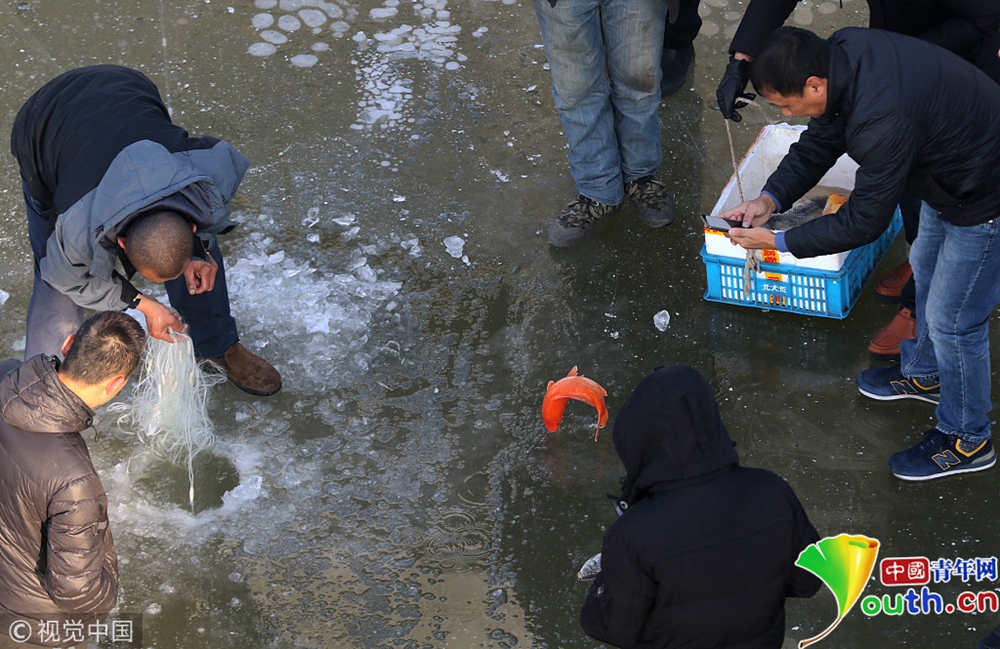 2018年12月26日,吉林松原,查干湖迎來了“紅網(wǎng)”,單網(wǎng)捕撈約30萬斤。