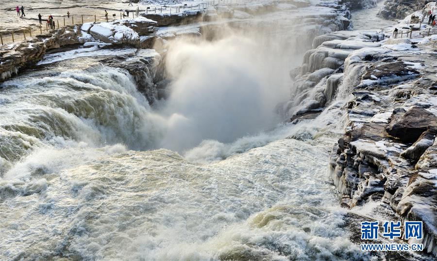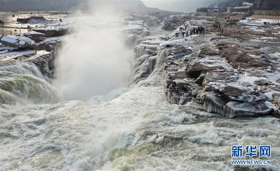 12月14日,游人在壺口瀑布景區(qū)游玩(無(wú)人機(jī)拍攝)。位于秦晉大峽谷的黃河壺口瀑布,冬日水量較夏日雖然有所減少,但驚天動(dòng)地的濤聲依舊,周圍石壁上的冰掛與河中的浪濤構(gòu)成一幅獨(dú)特的北國(guó)風(fēng)光圖,吸引游客前來(lái)觀賞。新華社記者陶明攝
