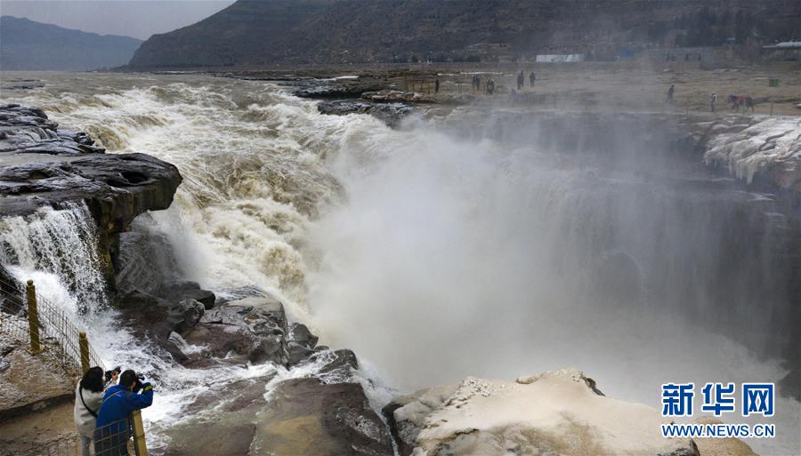 12月14日,游人在壺口瀑布景區(qū)游玩。新華社記者陶明攝