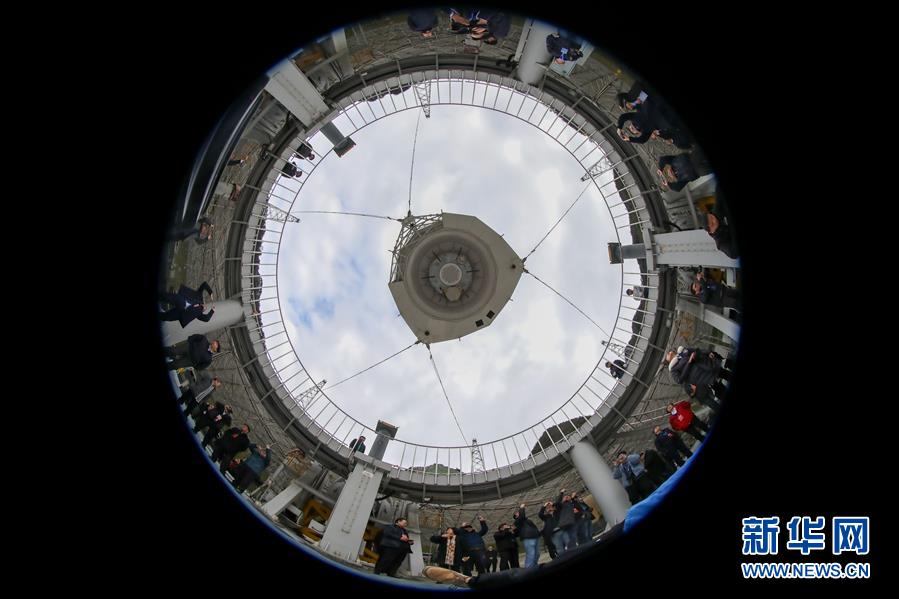 1月11日,專家學(xué)者對“中國天眼”進(jìn)行考察(檢修期間拍攝)。新華社記者歐東衢攝