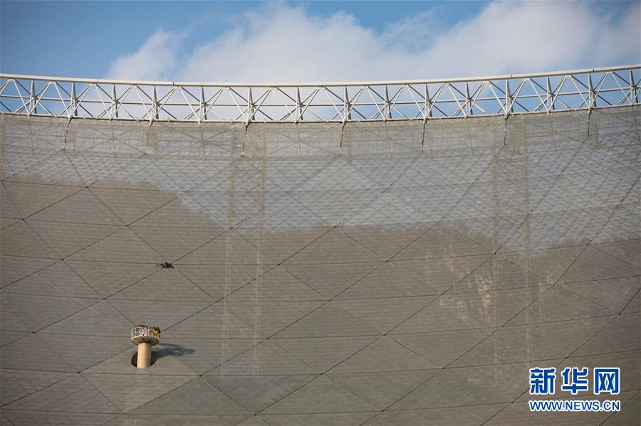 1月9日拍攝的“中國(guó)天眼”反射面板(檢修期間拍攝)。新華社記者劉續(xù)攝
