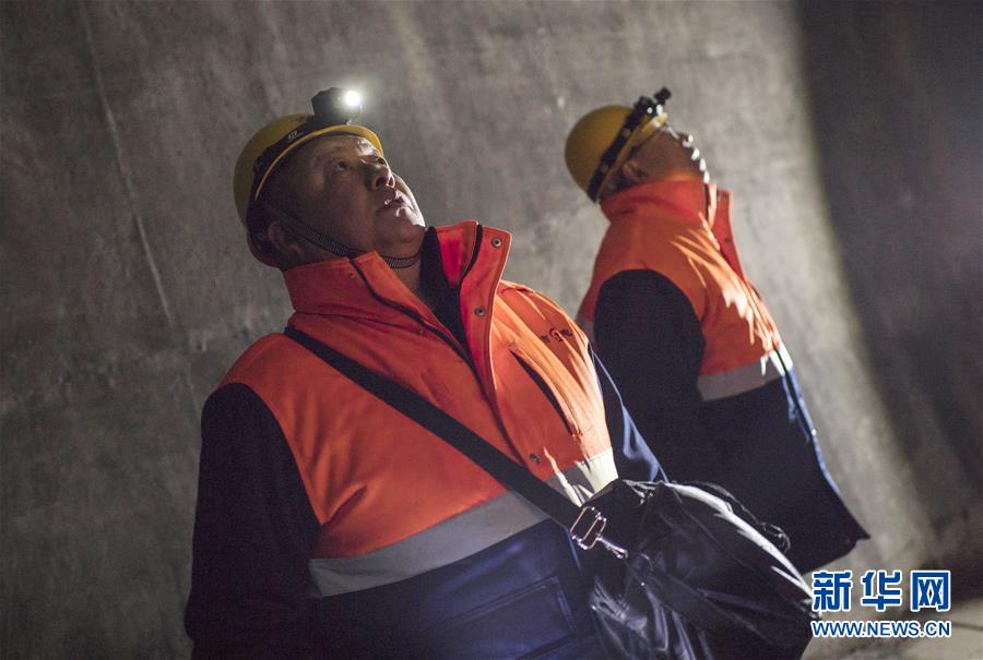 通化通信車(chē)間無(wú)線工區(qū)鐵路通信工人觀察隧道頂部通信線纜是否有外露情況(1月10日攝)。2020年春運(yùn)1月10日拉開(kāi)帷幕。新華社記者許暢攝