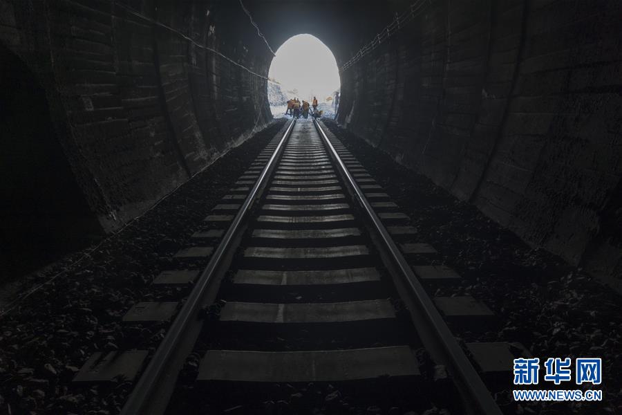 通化通信車(chē)間無(wú)線工區(qū)鐵路通信工人進(jìn)入全長(zhǎng)7088米的灣灣川隧道作業(yè)(1月10日攝)。2020年春運(yùn)1月10日拉開(kāi)帷幕。新華社記者許暢攝
