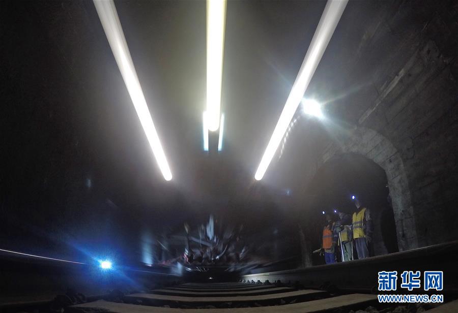1月6日,在加格達(dá)奇工務(wù)段西羅奇嶺二號(hào)隧道,西羅奇維修工隊(duì)工作人員進(jìn)行維修作業(yè)。新華社記者才揚(yáng)攝