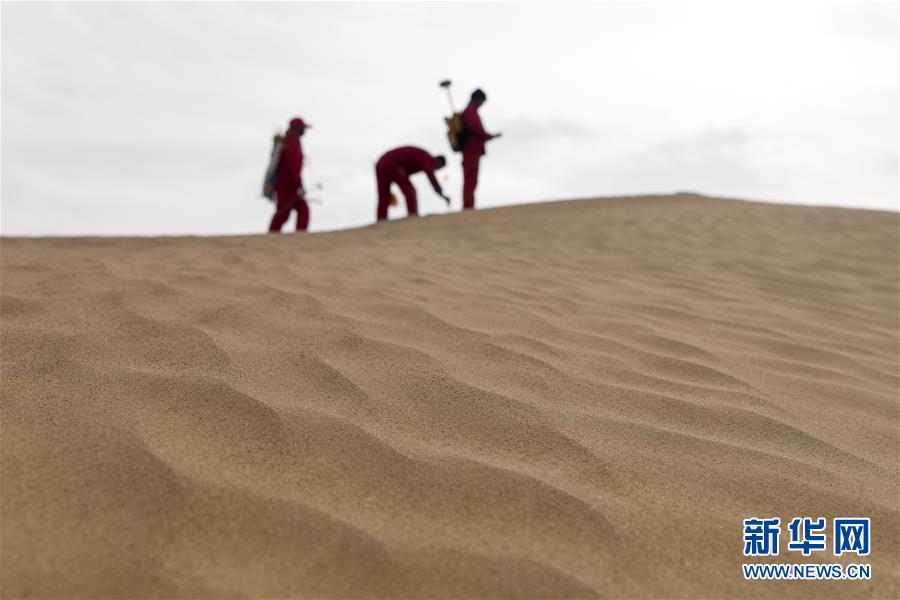 1月13日,測(cè)量工在測(cè)線上布設(shè)炮點(diǎn)樁號(hào)。地球物理勘探是油氣開發(fā)的第一步,相當(dāng)于給地球做CT。物探工人按照嚴(yán)格的測(cè)線部署,在相應(yīng)位置鉆井,然后實(shí)施地震,采集地震波數(shù)據(jù)。科研人員通過數(shù)據(jù)組成的“CT片”,就能夠清晰地“看”到地下的地質(zhì)結(jié)構(gòu),判斷哪里埋藏有石油或者天然氣。2019年10月,東方地球物理勘探有限責(zé)任公司塔里木物探處2113隊(duì)進(jìn)入新疆塔克拉瑪干沙漠腹地,開始中古14-21、塔中2兩個(gè)區(qū)塊的三維地震勘探。近2000名物探工人將在1000平方公里的范圍內(nèi)一直工作到2020年4月,這也意味著他們將在塔克拉瑪干沙漠腹地連續(xù)度過第14個(gè)除夕夜。蘊(yùn)藏著豐富石油天然氣資源的新疆塔克拉瑪干沙漠有“死亡之?!敝Q,氣候干燥,年降水量在50毫米以下,冬季地表最低溫度超過零下30攝氏度,是世界油氣勘探難度最大的地區(qū)之一。為避開風(fēng)季,物探工人每年9、10月份進(jìn)入沙漠,一直工作到來年4月,夜以繼日與黃沙、嚴(yán)寒為伴,用辛勤的汗水,為祖國(guó)找油找氣。新華社記者丁磊攝