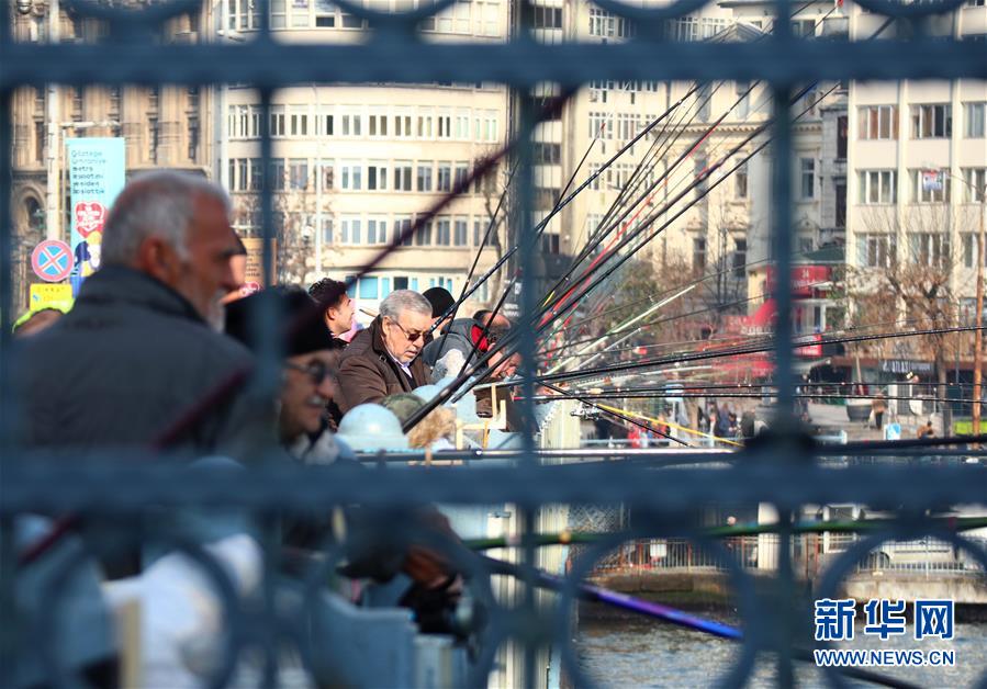 1月14日,在土耳其伊斯坦布爾,人們在海邊垂釣。 近日,土耳其最大城市伊斯坦布爾的氣溫轉(zhuǎn)暖,不少垂釣愛好者來到海邊,享受冬日的暖陽和垂釣的樂趣。 新華社記者 徐速繪 攝