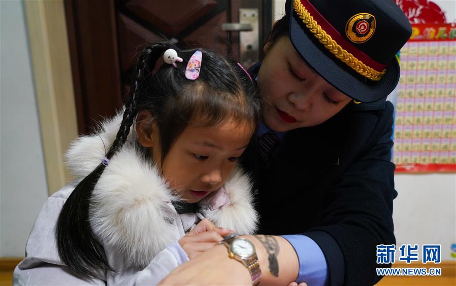 1月5日傍晚,朱梓芮為即將出乘的卞菁畫上手表。新華社記者 張浩波 攝